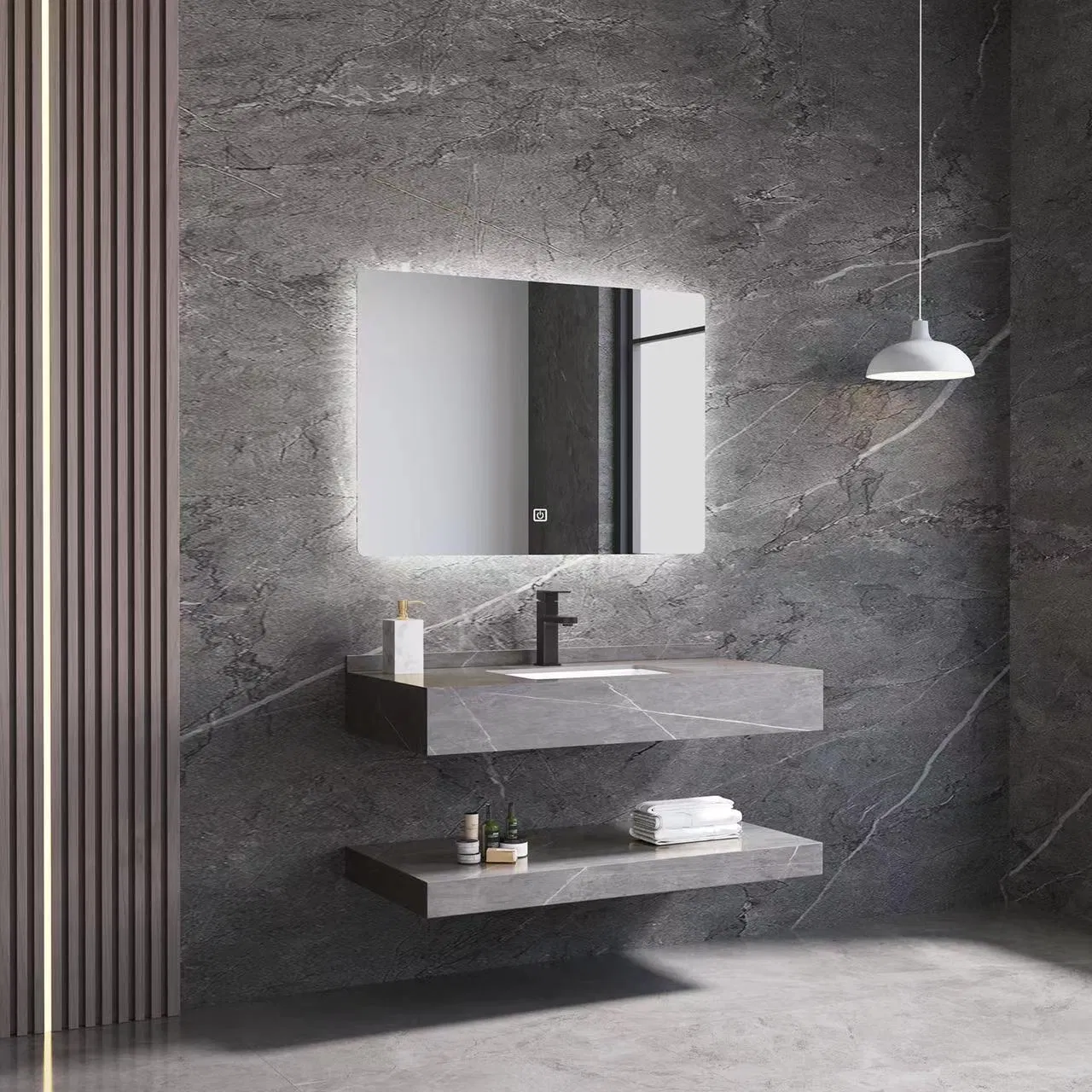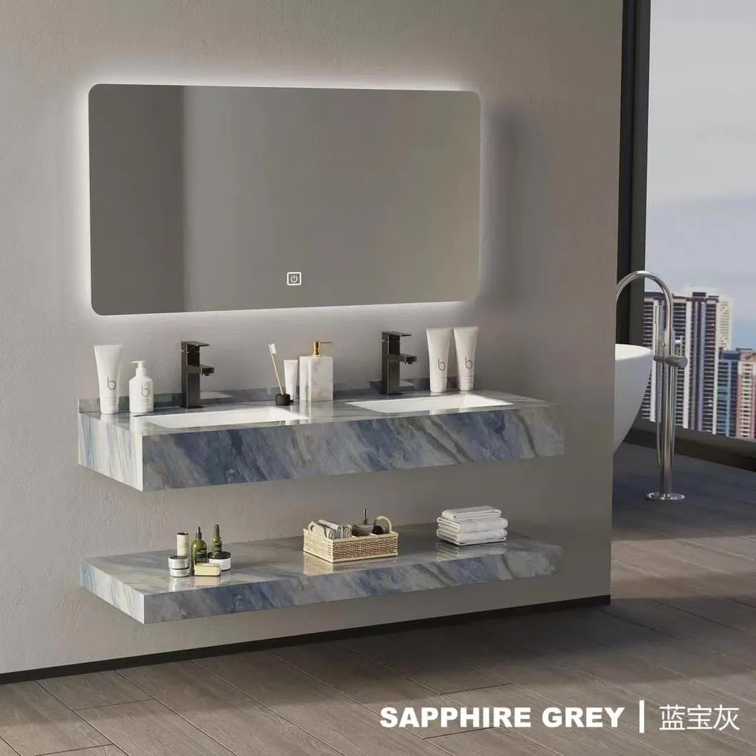 Rock Plate Marble Counter Slate Double Sintered Stone Bathroom Hotel Furniture Cabinet Vanity with Stone Wash Basin